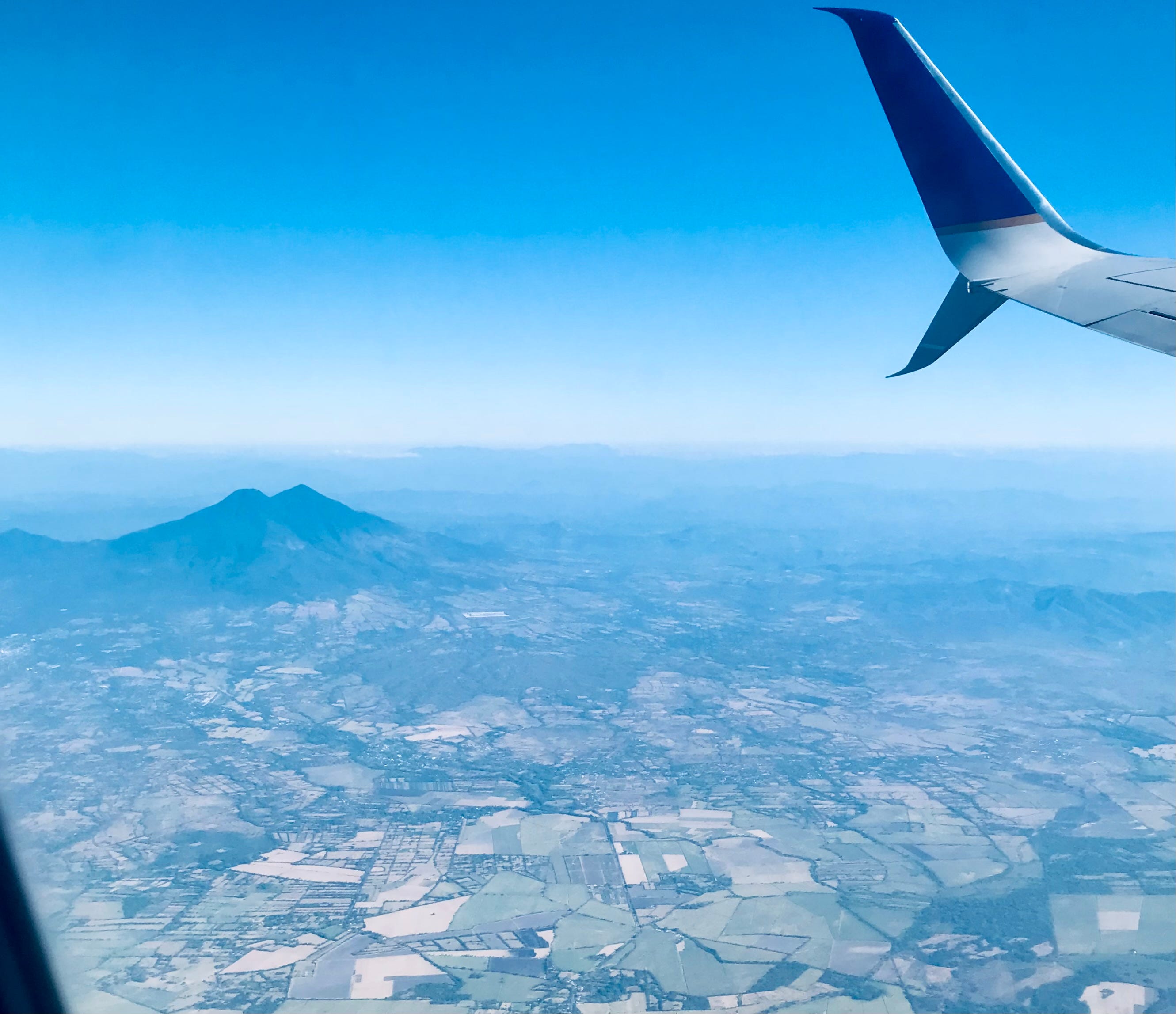 As we flew above El Salvador, my 10-year-old took this, one last view of the countryside with an epic volcano jutting up.
