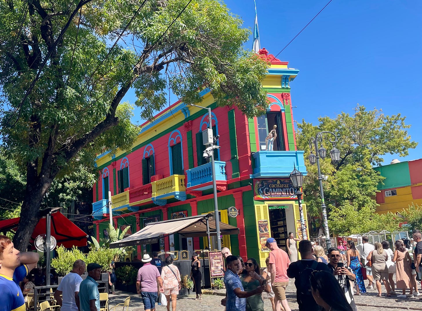 Then, on Wednesday we took the subway—the girls’ first time ever—and then hopped on a city bus to La Boca, a famous port settlement in Buenos Aires, over 440 years old. Thanks to a suggestion from our British friends, we took a 2-hour guided tour of the area with a group of English-speakers. It was well-worth the effort to get there, and the $13 tickets. This touristy area is well-known for its brightly-coloured buildings, said to have been painted by the Italian immigrants with leftover paint from the ships.